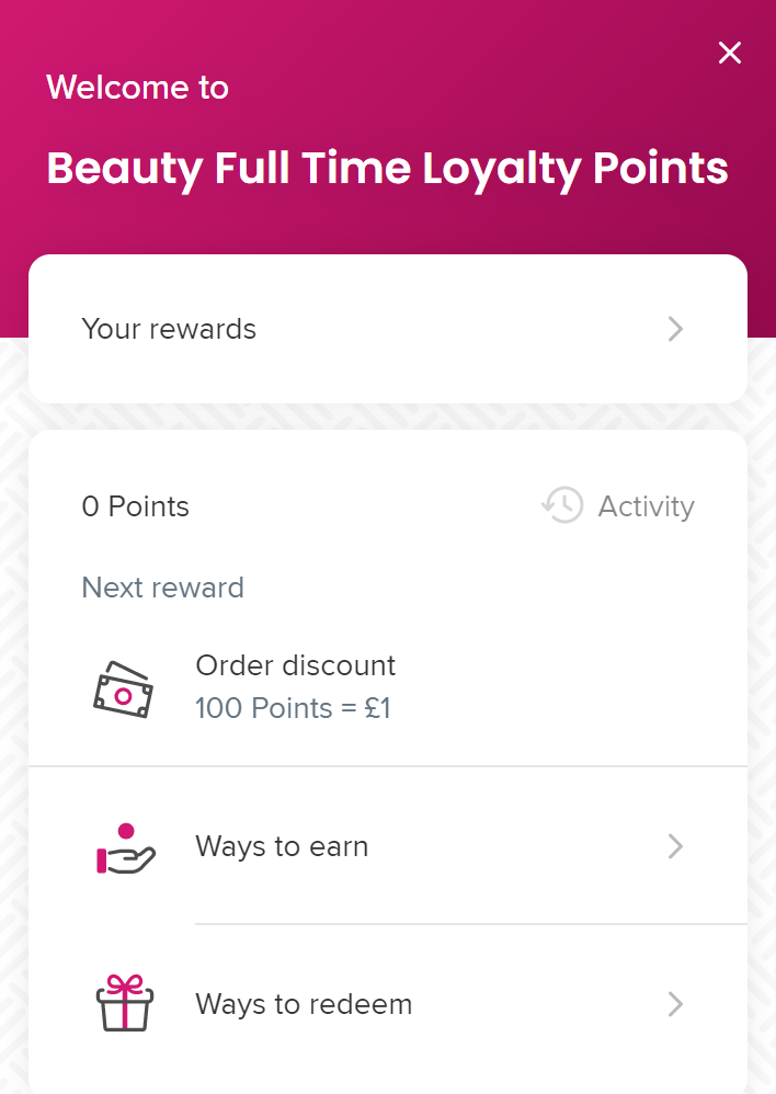 For every £1 spent with us, you collect 4 points towards your next beauty treat. If you sign up to part of the BFT community you'll also get the chance to see our exclusive offers on the things that you love, along with all our new product launches.